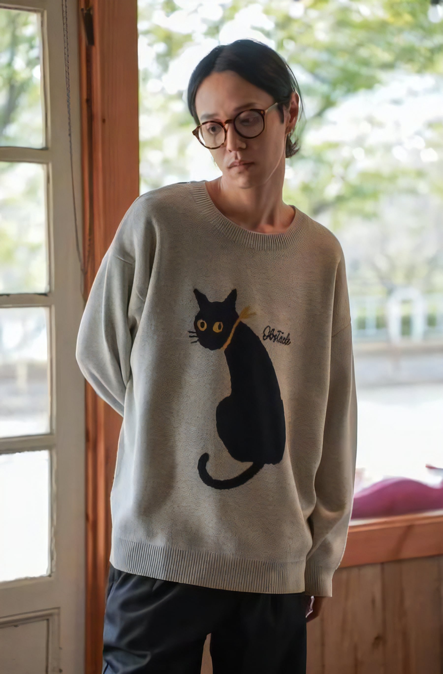 レトロ格子柄JQDニットソー トリムクルーロングスリーブTシャツ