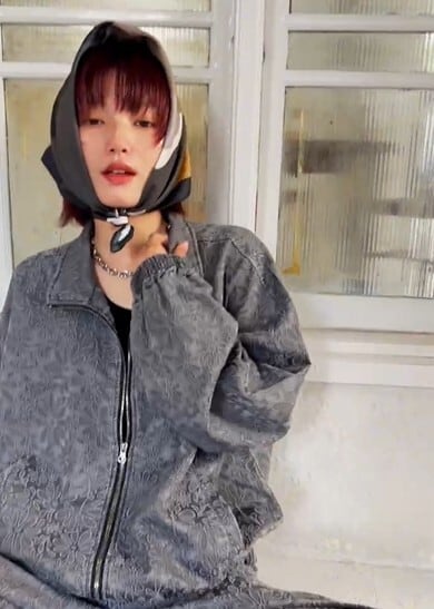 フェイクスウェードポンチ袖配色切替ルーズシルエットロングスリーブカットソー