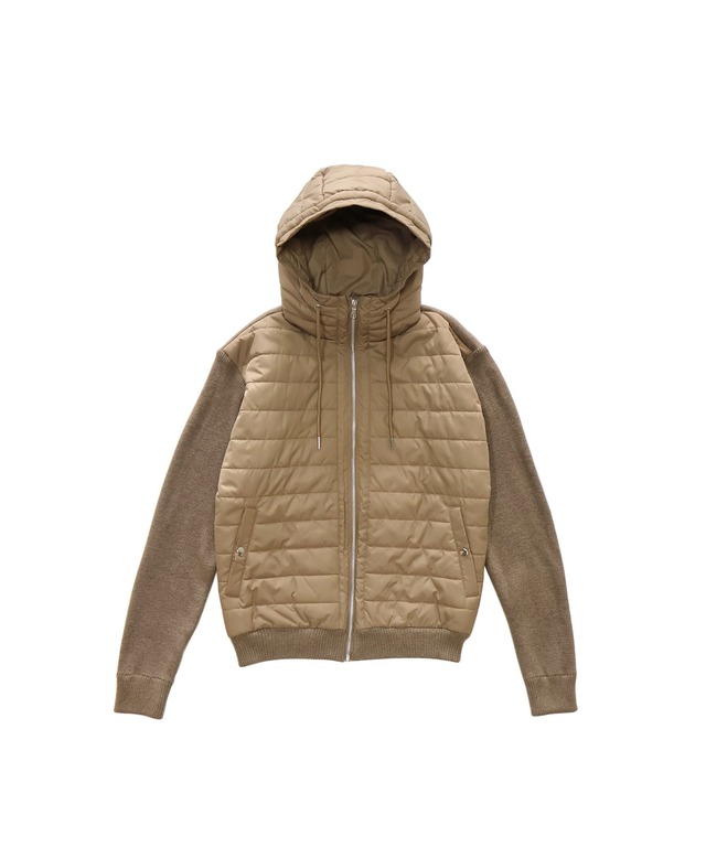 MMMM フーデット バファー ジャケット ニット ドッキング ベージュ
