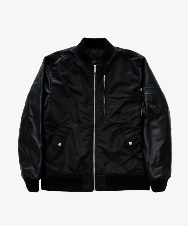 MMMM MA-1タイプ ブルゾン ナイロン ツイル ラムレザー ブラック