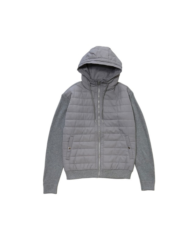 MMMM フーデット バファー ジャケット ニット ドッキング グレー