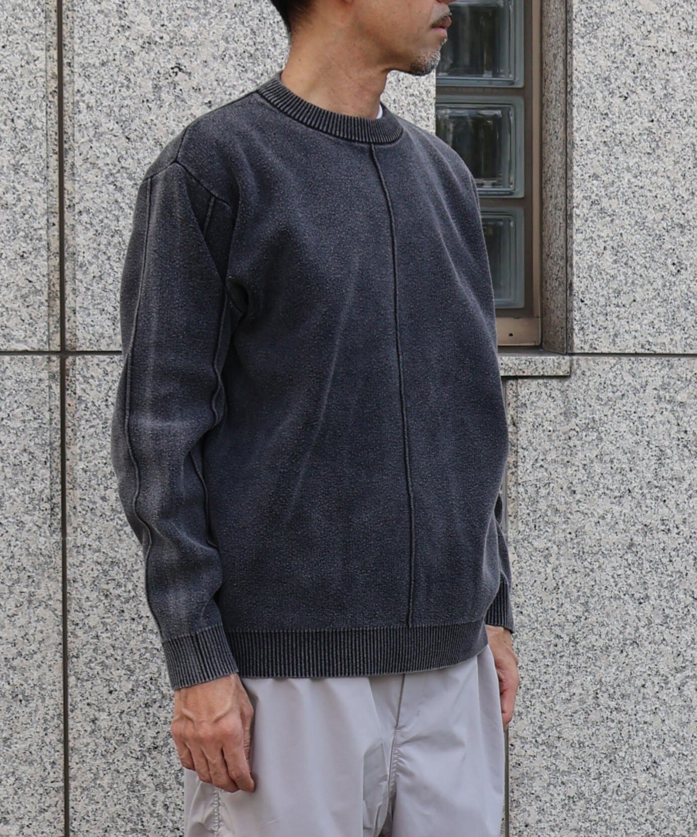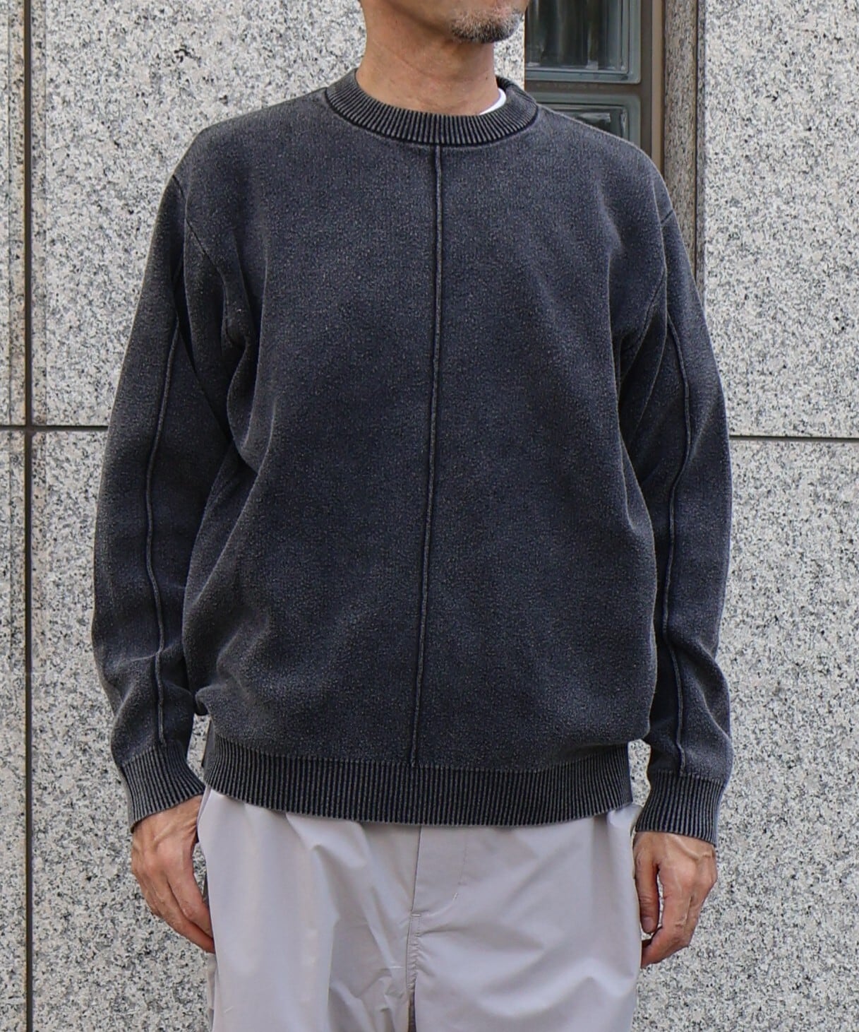 アシッドウォッシュの加工感を活かしたコットンニット。