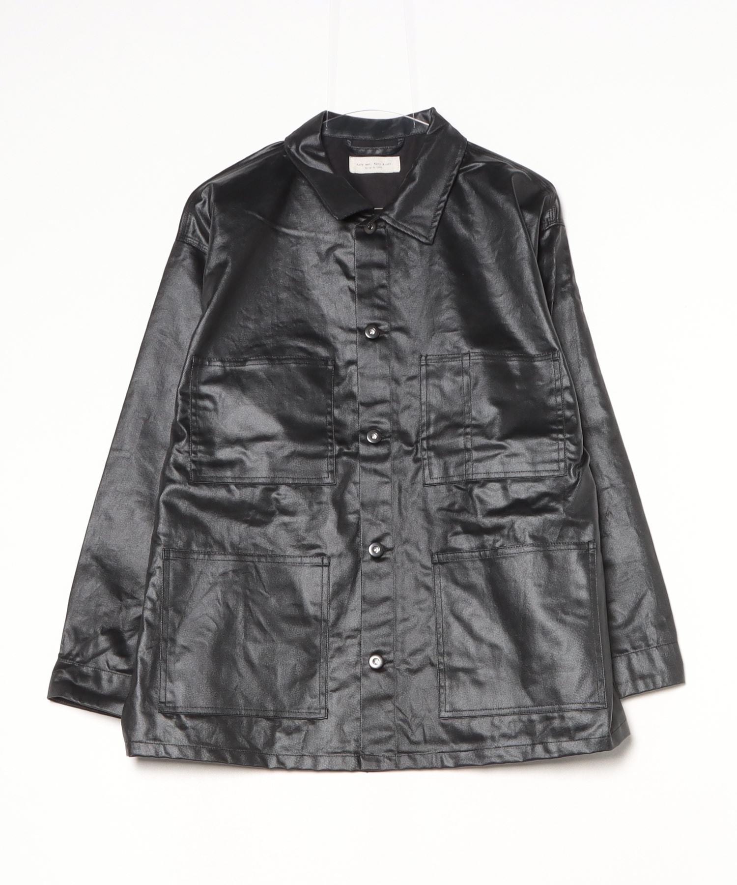 Many men, many minds. フロッキー加工 デニム PUコーティング カバーオール ブラック