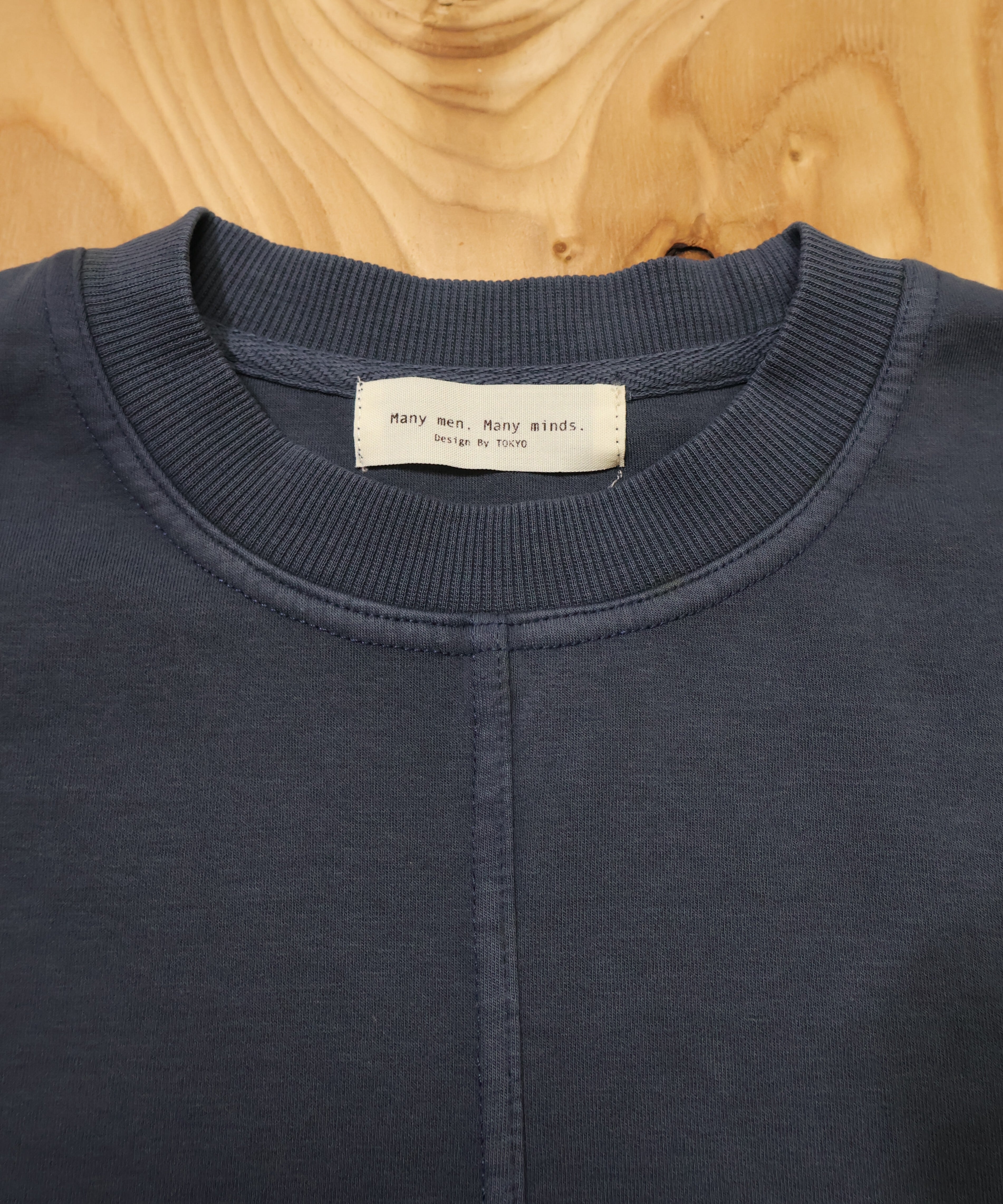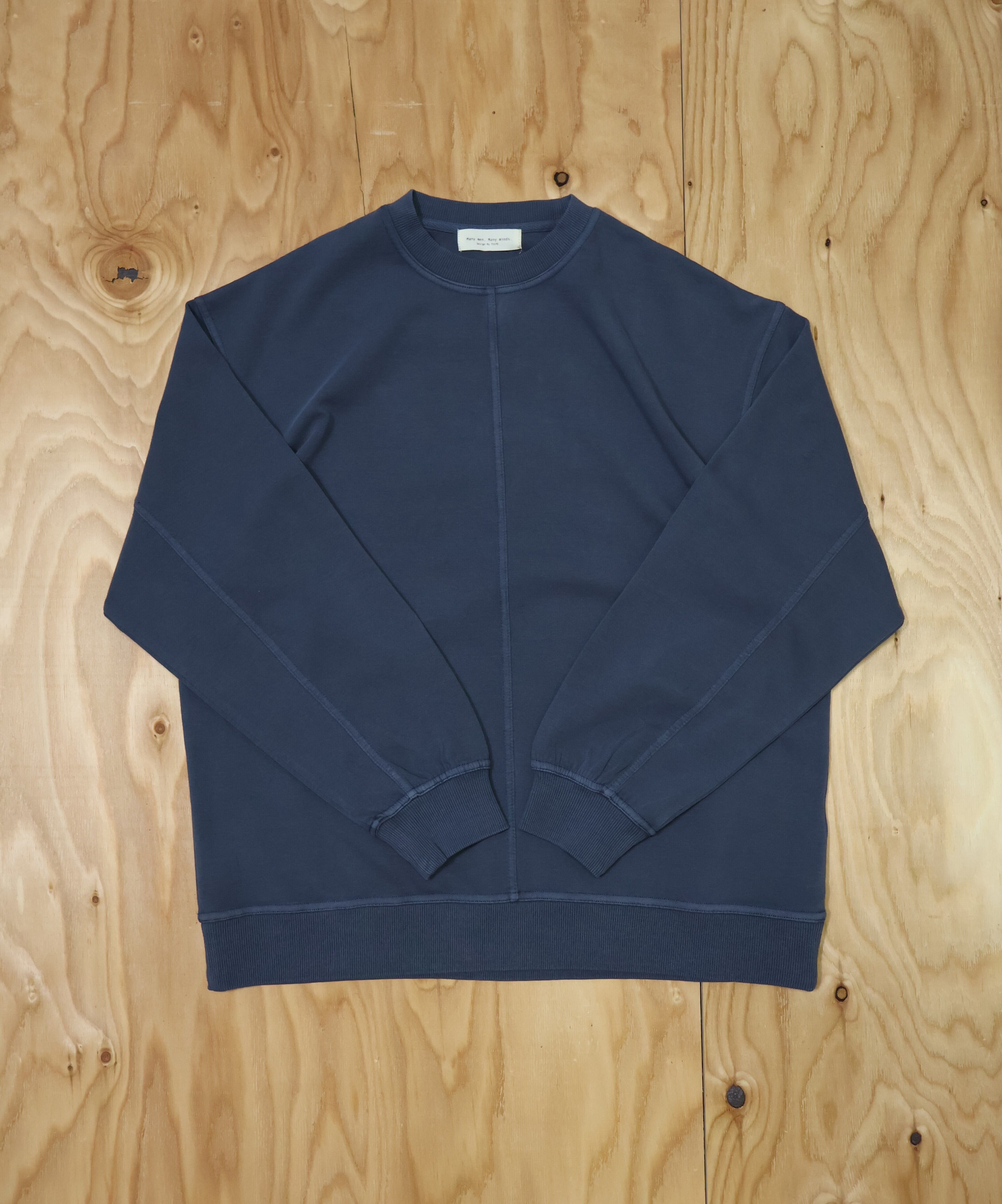Many men, many minds. ピグメント ポンチ ロングスリーブ 切替プルオーバー スウェット ネイビー