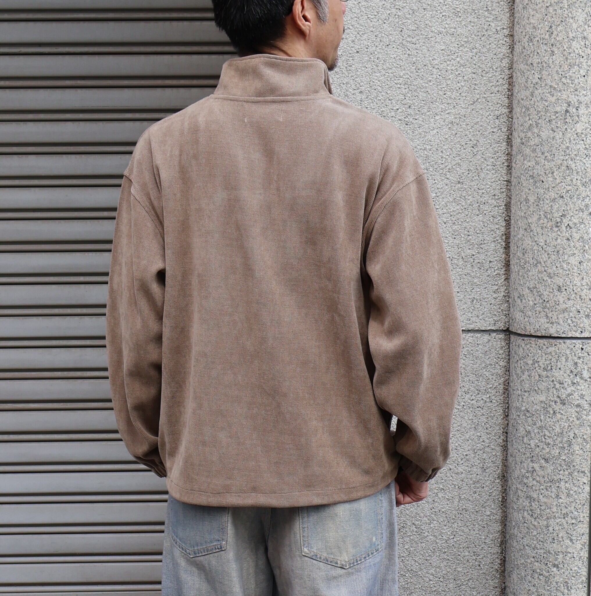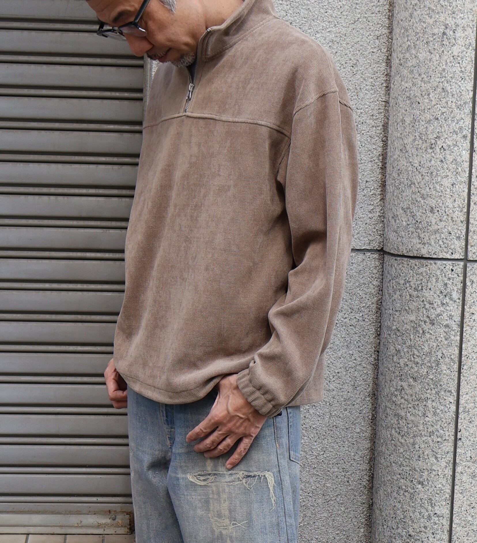 柔らかな風合いと適度な光沢感が魅力のカットコーデュロイ素材を使用したハーフジッププルオーバー。