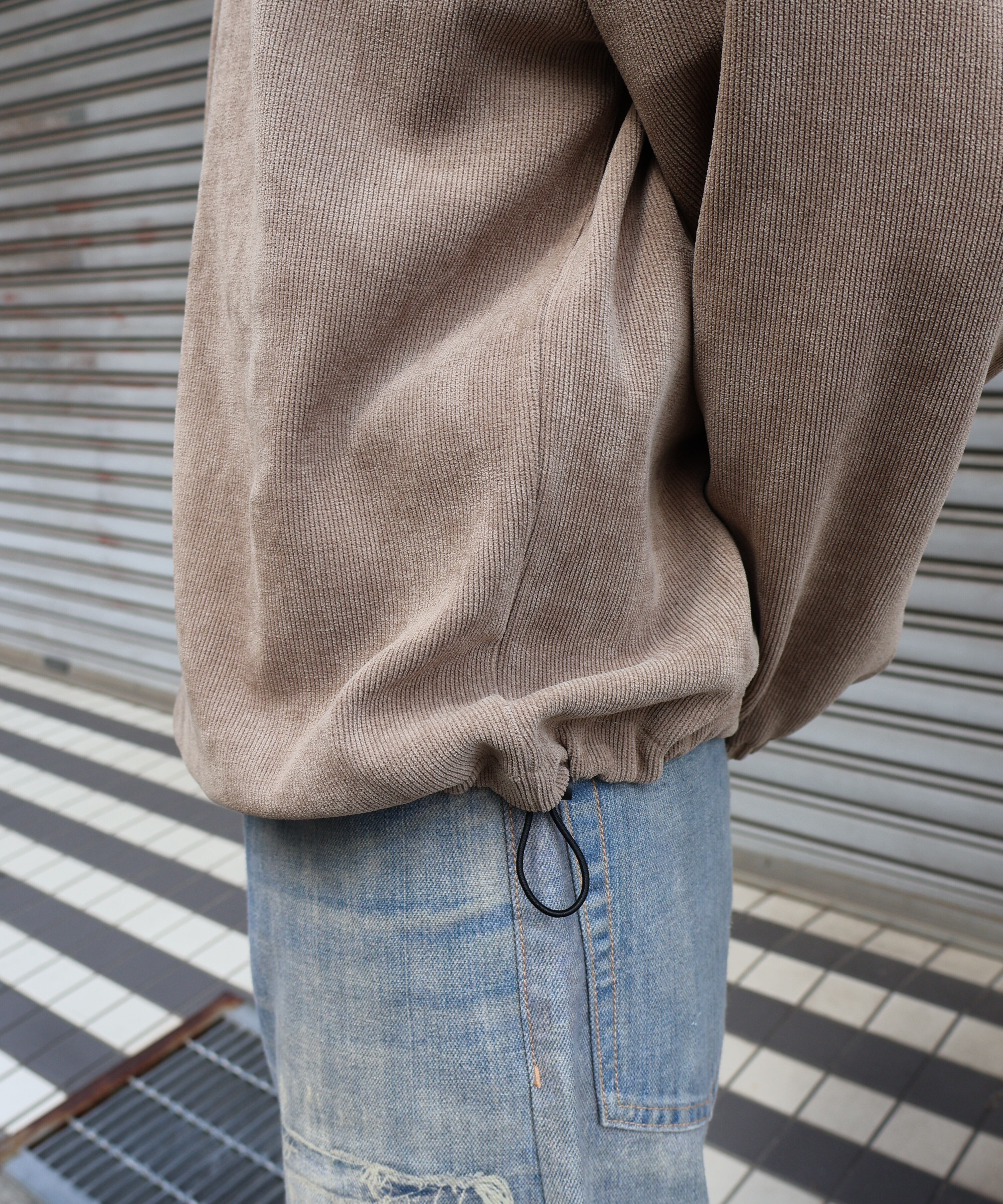 カットコーデュロイハーフジップ/裾ドローコード入り