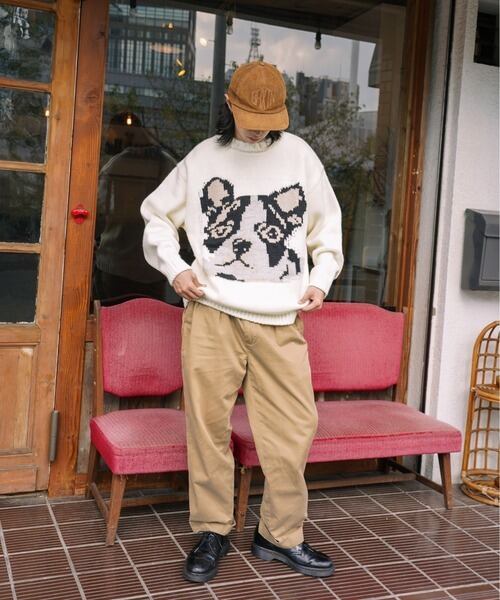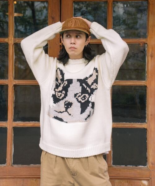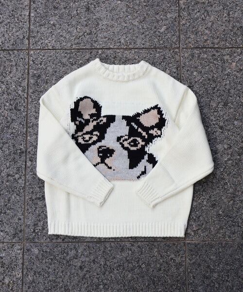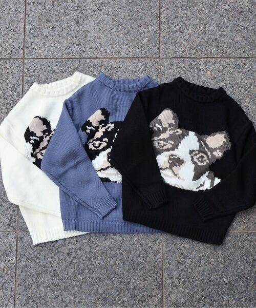 ATELANE ざっくり アソートニット フレンチブルドッグ フレブル オフホワイト