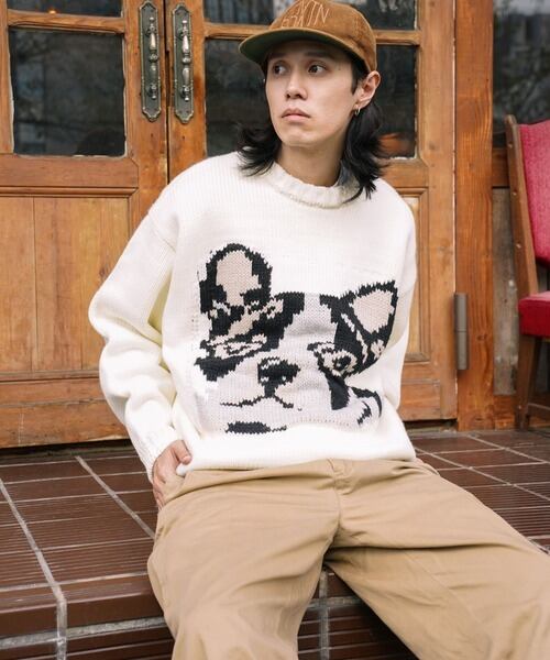 インパクト抜群のグラフィックが特徴のざっくりニット
