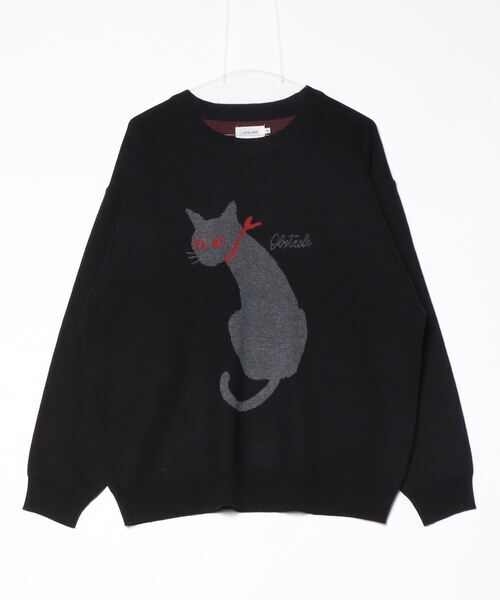 ATELANE スウェットライク ジャガード クルーネック ニット チャコール