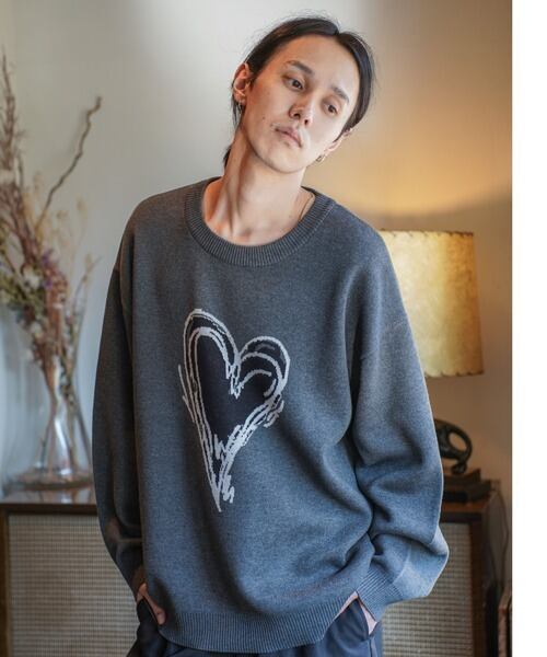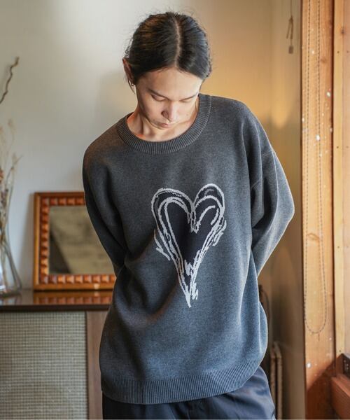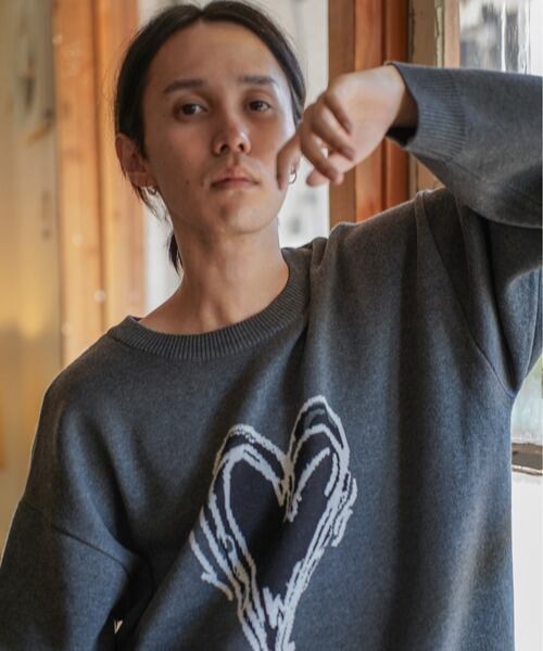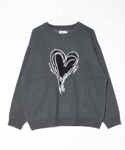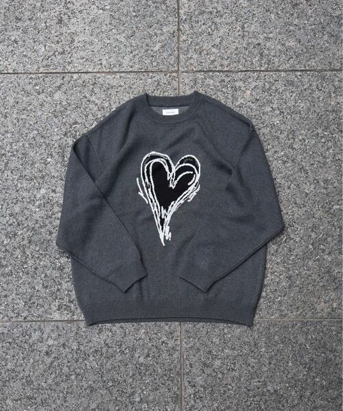ATELANE スウェットライク ジャガード クルーネック ニット ハート