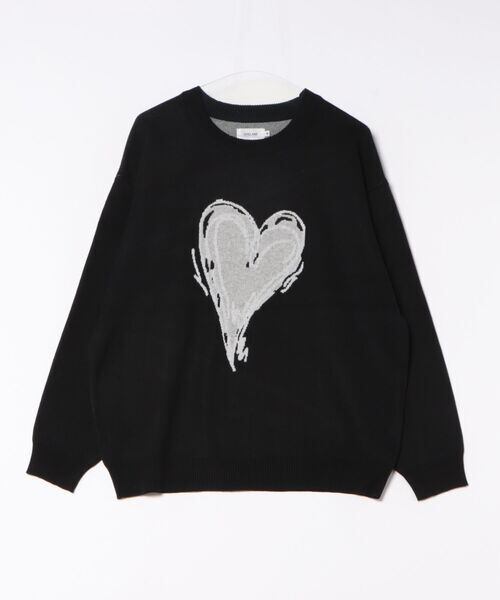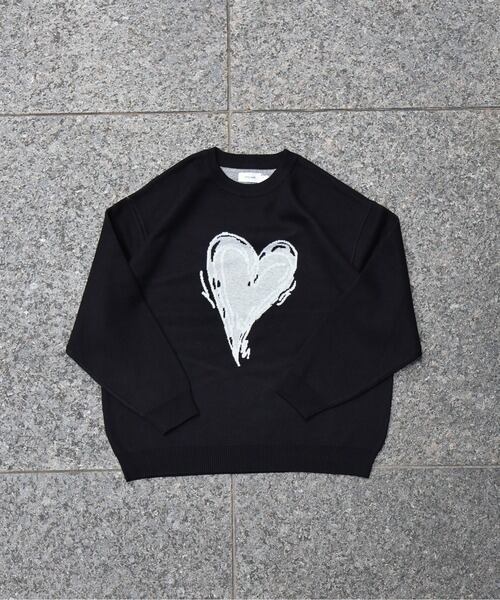 ATELANE スウェットライク ジャガード クルーネック ニット ハート