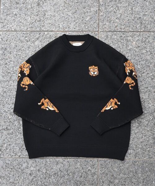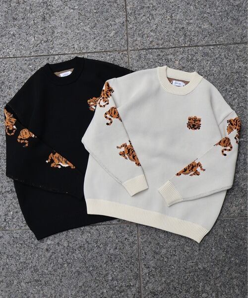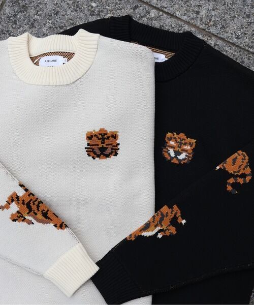 ATELANE エアリーニット Wジャガード クルーネック トラ