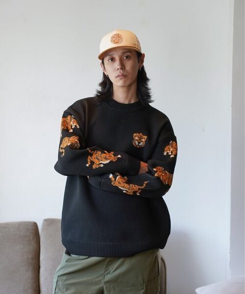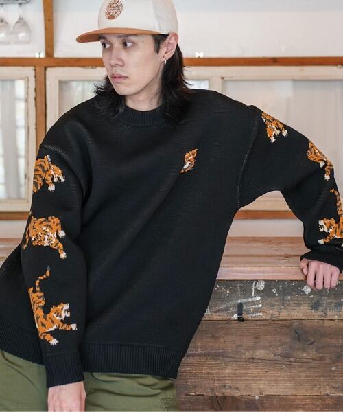 程よいオーバーサイズ感で、暖かみのある編み目が印象的。
